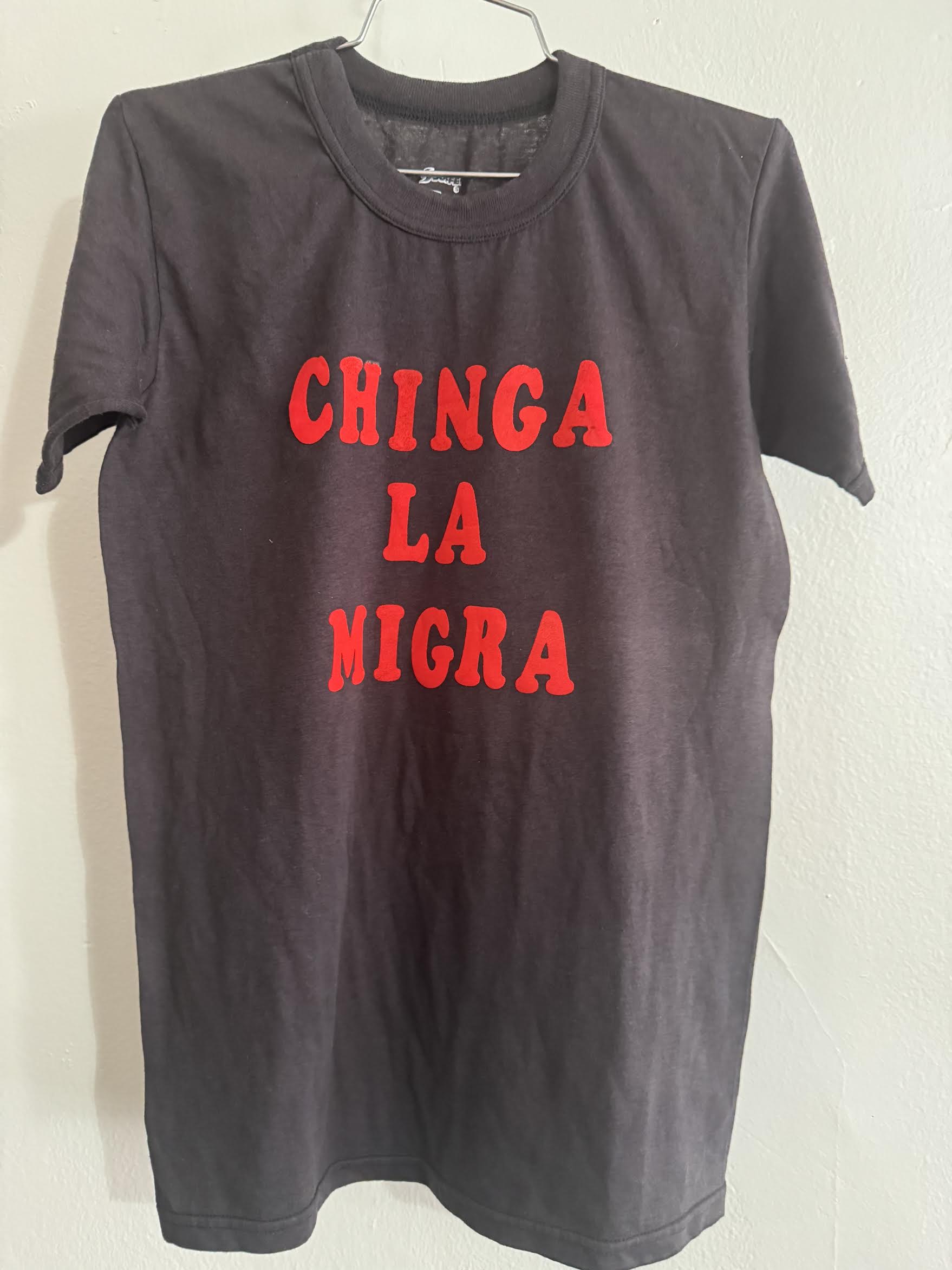 50/50 faded poly cotton tee available in S-XL. A portion of proceeds will be donated to legal aid for immigrants and US citizens who's legal status has been revoked.