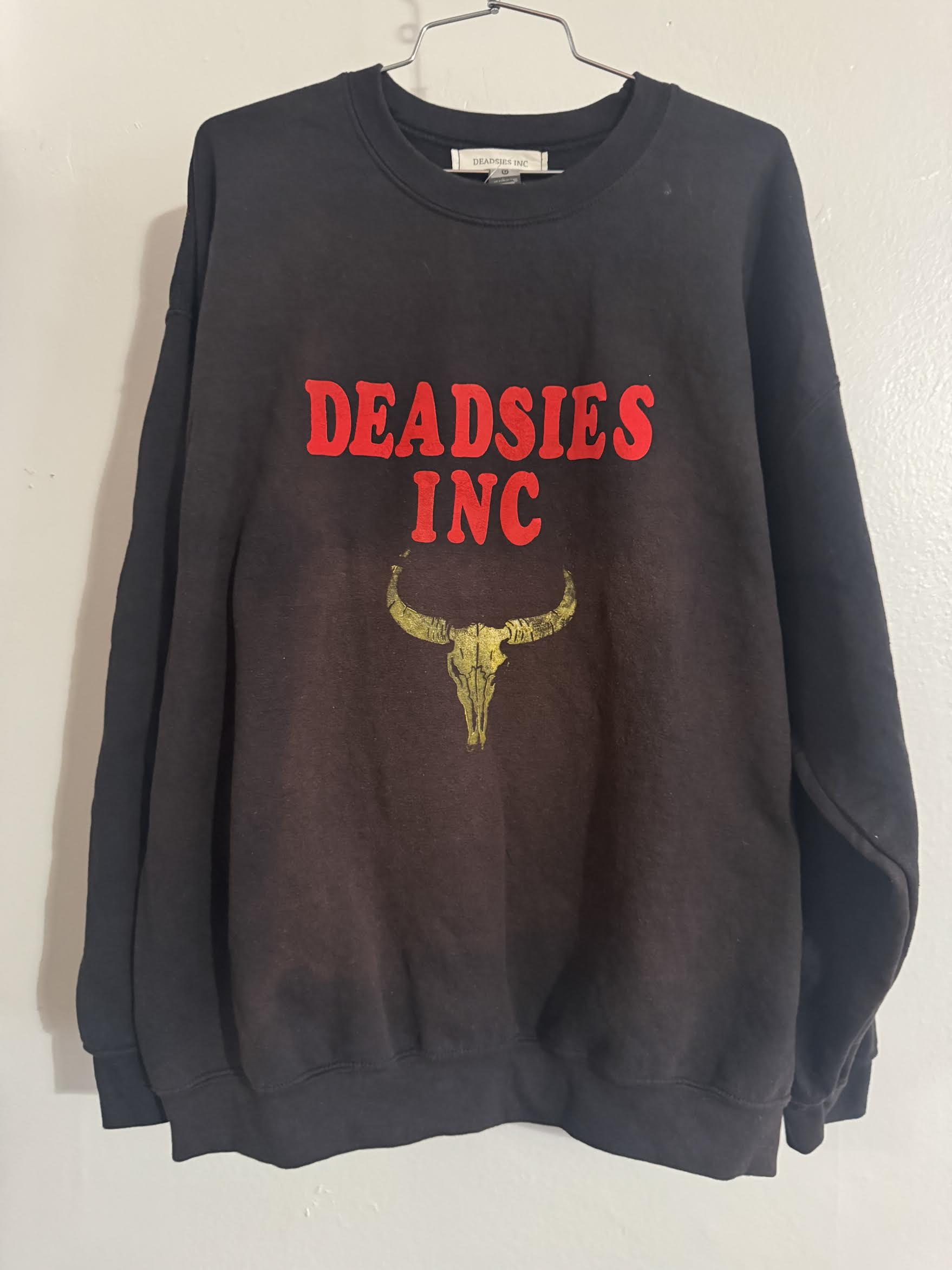 DEADSIES INC logo on a faded black crew neck sweatshirt available in s-2x
