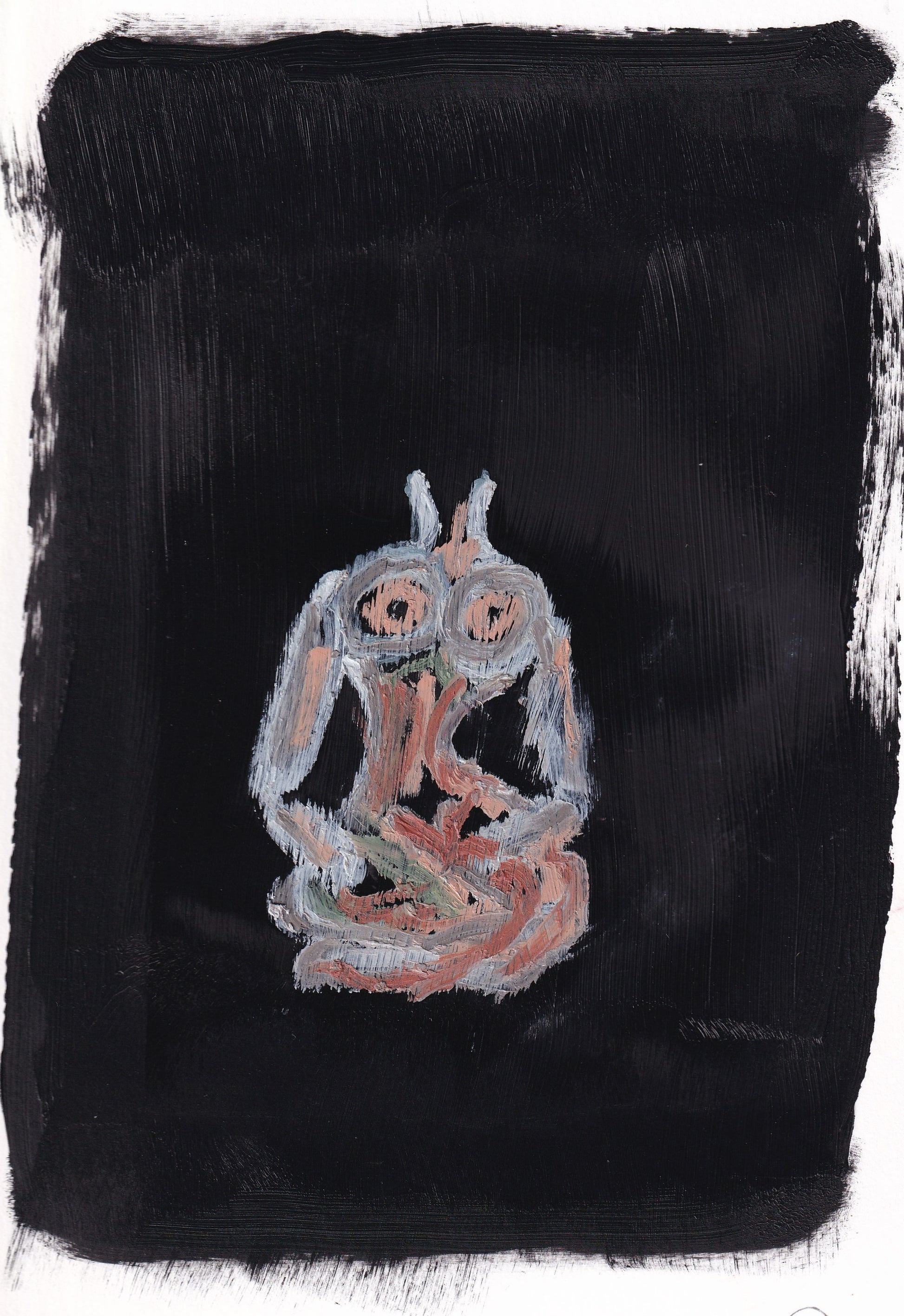 original painting of a woman in repose, waiting patiently. Acrylic paint and oil pastels on 9"x 12" bristol paper.