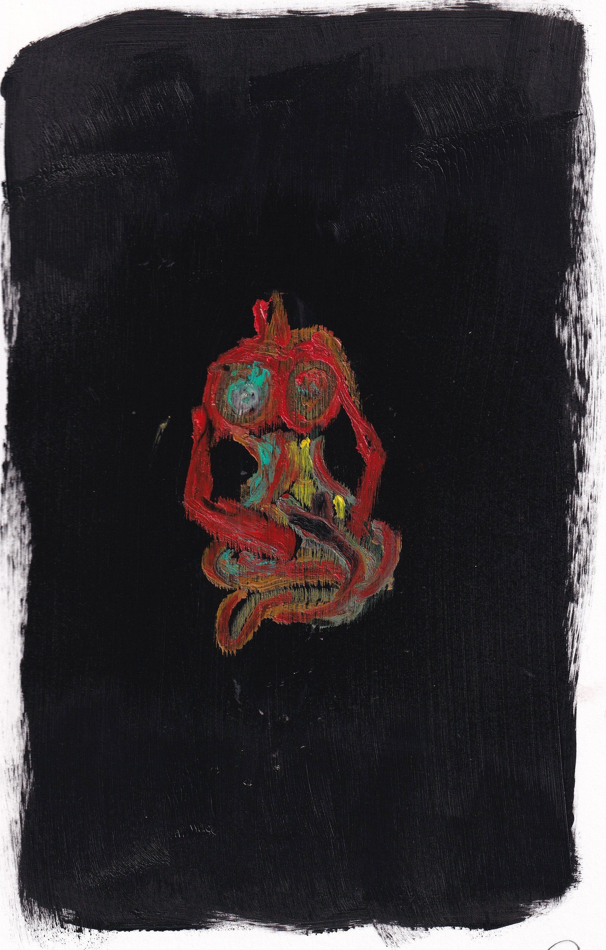 original painting of a woman in repose, waiting patiently. Acrylic paint and oil pastels on 9"x 12" bristol paper.