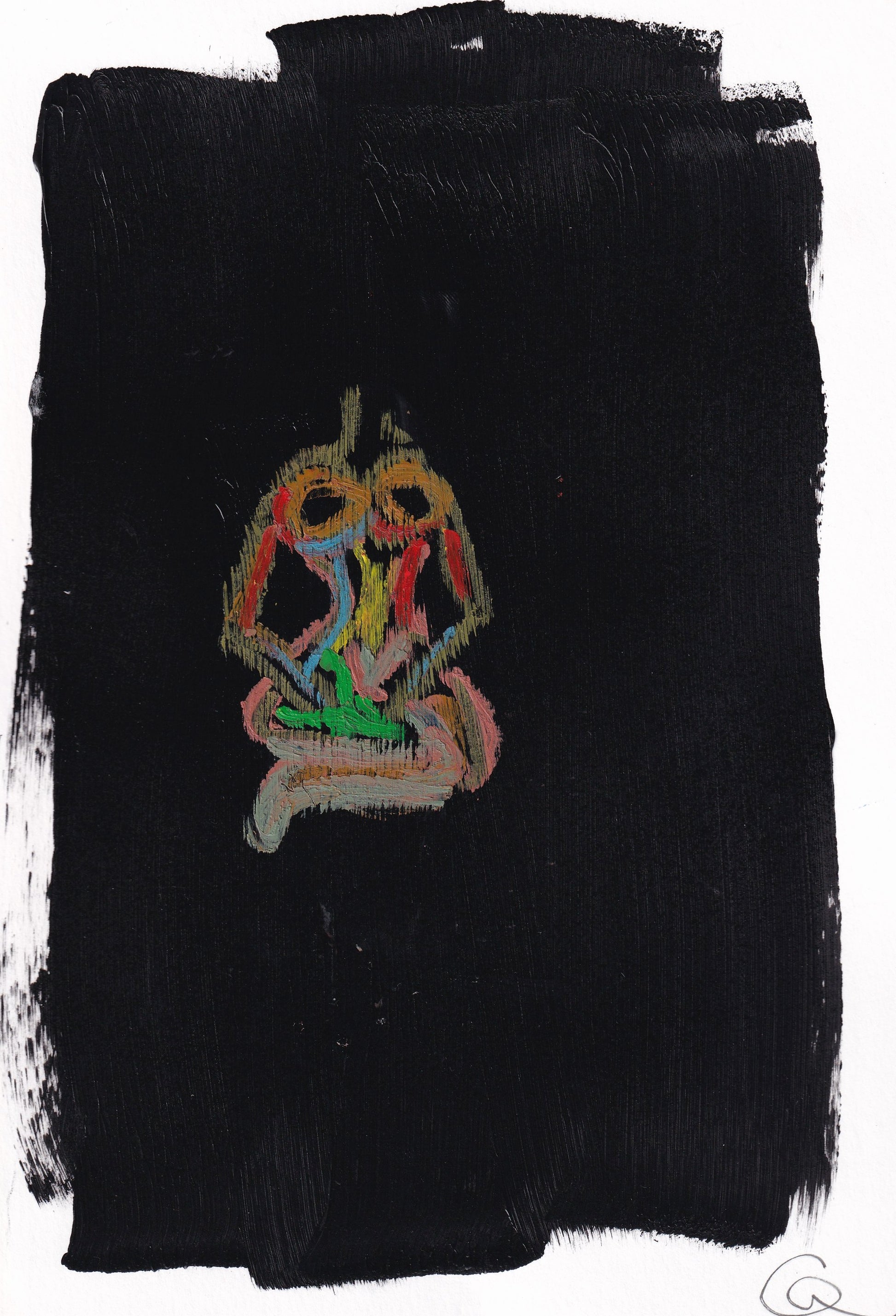 original painting of a woman in repose, waiting patiently. Acrylic paint and oil pastels on 9"x 12" bristol paper.